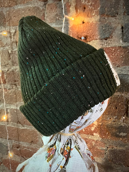 Fern & Stars Patch Beanie - Green Tweed