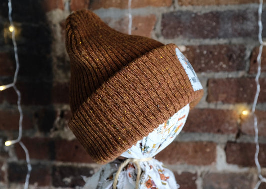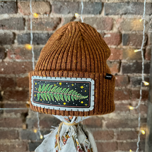 Fern & Stars Patch Beanie - Dark Brown Tweed